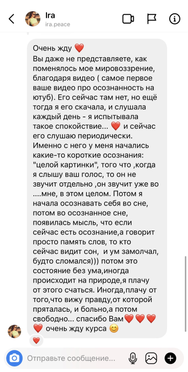 Ошибочно считая ее собой и своей жизнью ты неосознанно воображаешь образ себя и всю жизнь пытаешься его контролировать и улучшать, борясь с действительностью.Действительность,